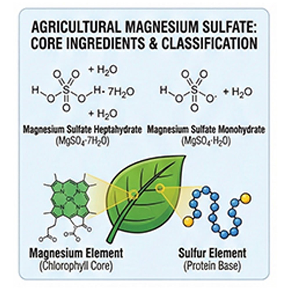 Agricultural Magnesium Sulfate is a vital secondary nutrient fertilizer that primarily comes in two chemical forms: Magnesium Sulfate Monohydrate (MgSO₄·H₂O) and Magnesium Sulfate Heptahydrate (MgSO₄·7H₂O).