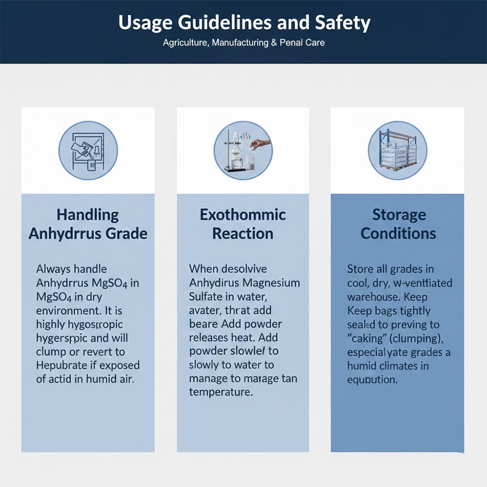 Exothermic Reaction: When dissolving Anhydrous Magnesium Sulfate in water, be aware that it releases heat. Add the powder slowly to water to manage the temperature.
